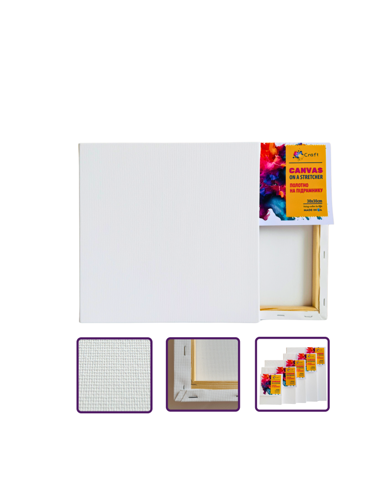 The canvas on stretcher bars (tablet stretching of canvas) is manufactured from a blend of poly-cotton and wooden stretcher bars, adhering to the highest quality standards. The combination of a balanced canvas composition on a cotton base, specially developed acrylic primer, and mechanical stretching ensures the elasticity of the canvas and resistance to sagging.