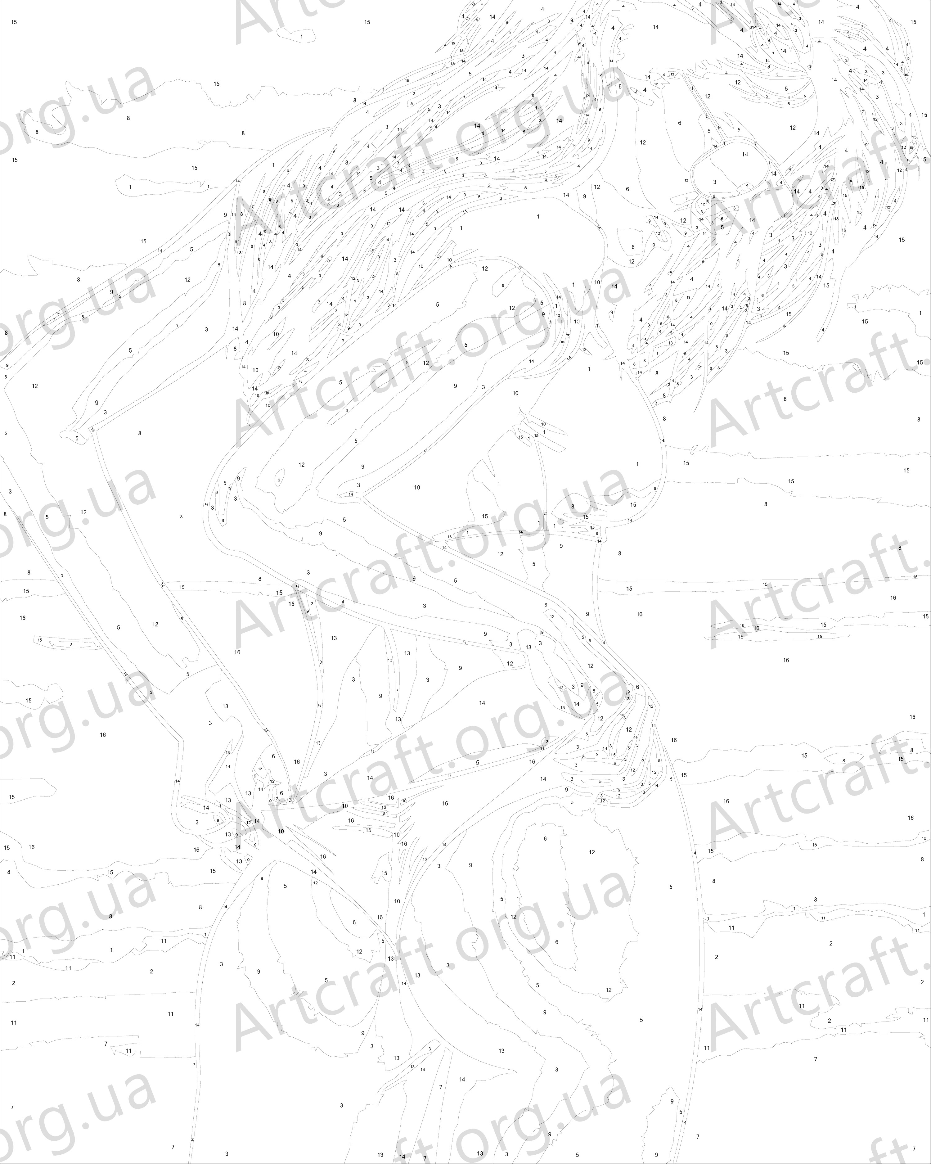 1. A canvas on a wooden stretcher frame with pre-drawn outlines and numbers. The combination of a balanced cotton-based canvas, a specially developed acrylic primer and mechanical stretching ensures the canvas’s elasticity and resistance to sagging.