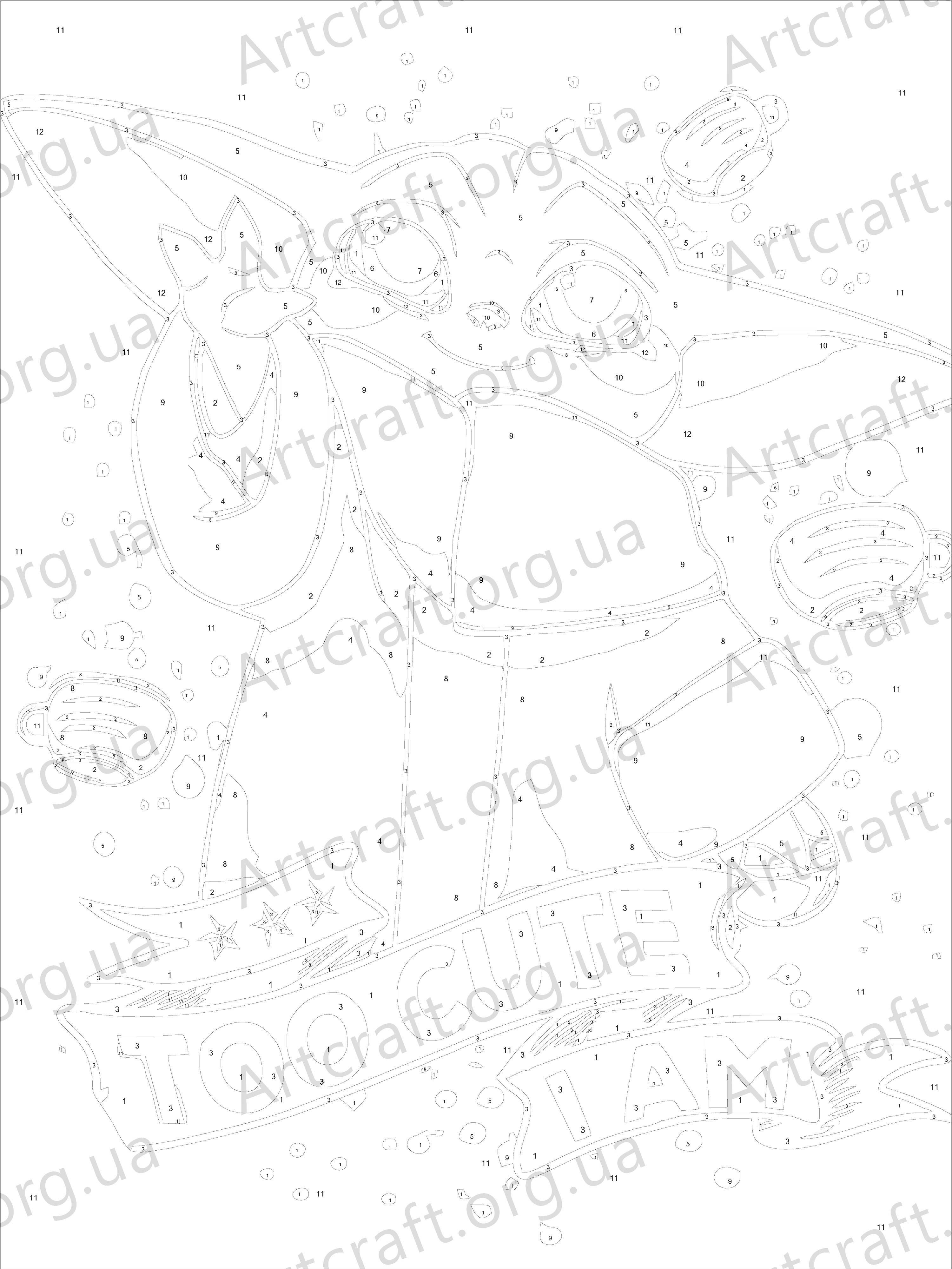 1. Canvas on a wooden stretcher with outlines and numbers. The combination of a balanced cotton-based canvas, specially developed acrylic primer and mechanical stretching guarantees the elasticity of the canvas and resistance to sagging.