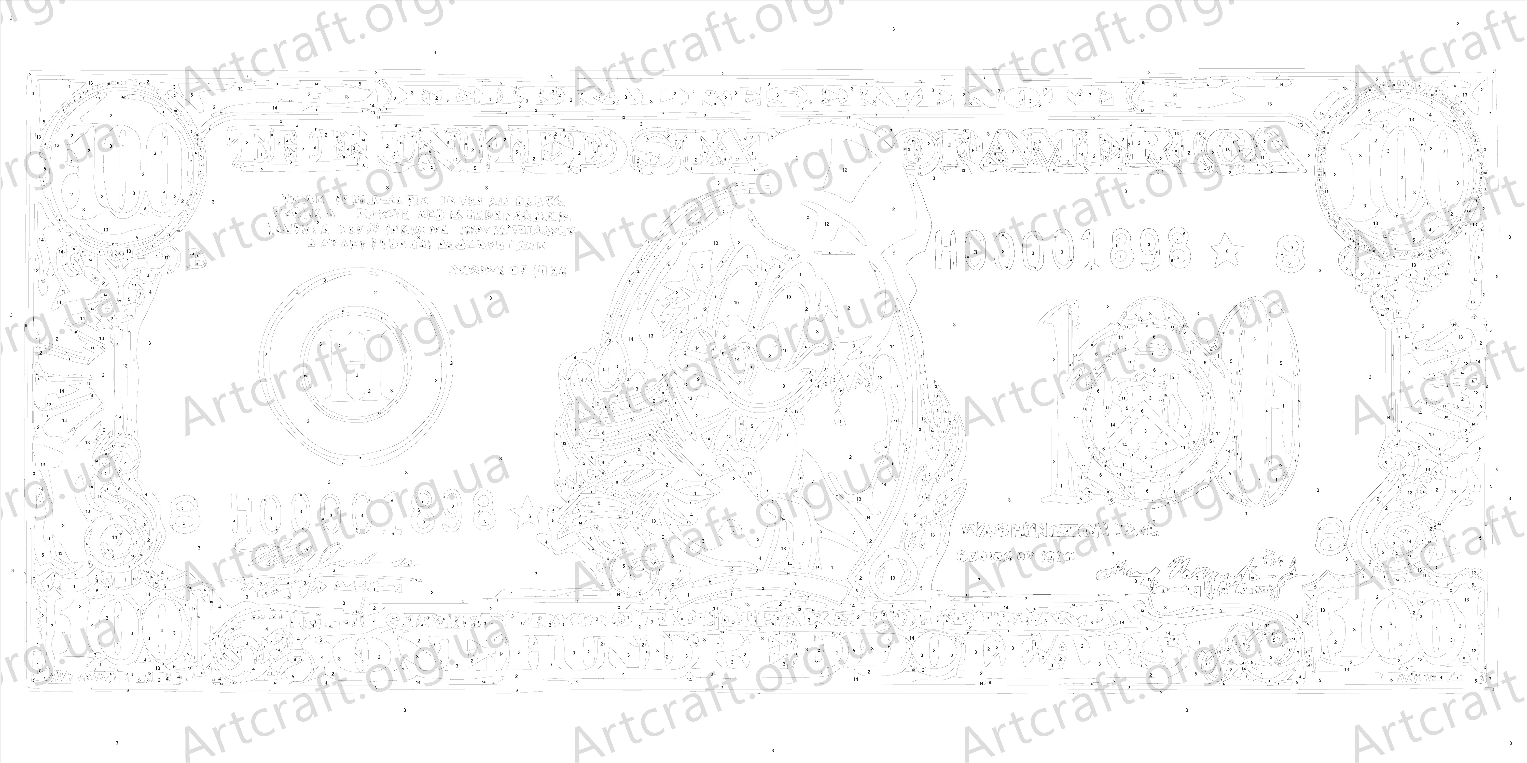 1. Canvas on a wooden stretcher with outlines and numbers. The combination of a balanced cotton-based canvas, specially developed acrylic primer and mechanical stretching guarantees the elasticity of the canvas and resistance to sagging.