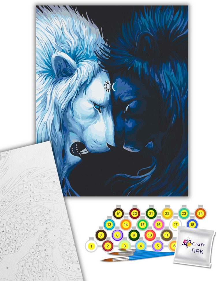 Canvas on a wooden stretcher with pre-printed contours and numbers. The combination of a balanced composition of canvas on a cotton base, specially developed acrylic primer, and mechanical stretching ensures the elasticity of the canvas and resistance to sagging.