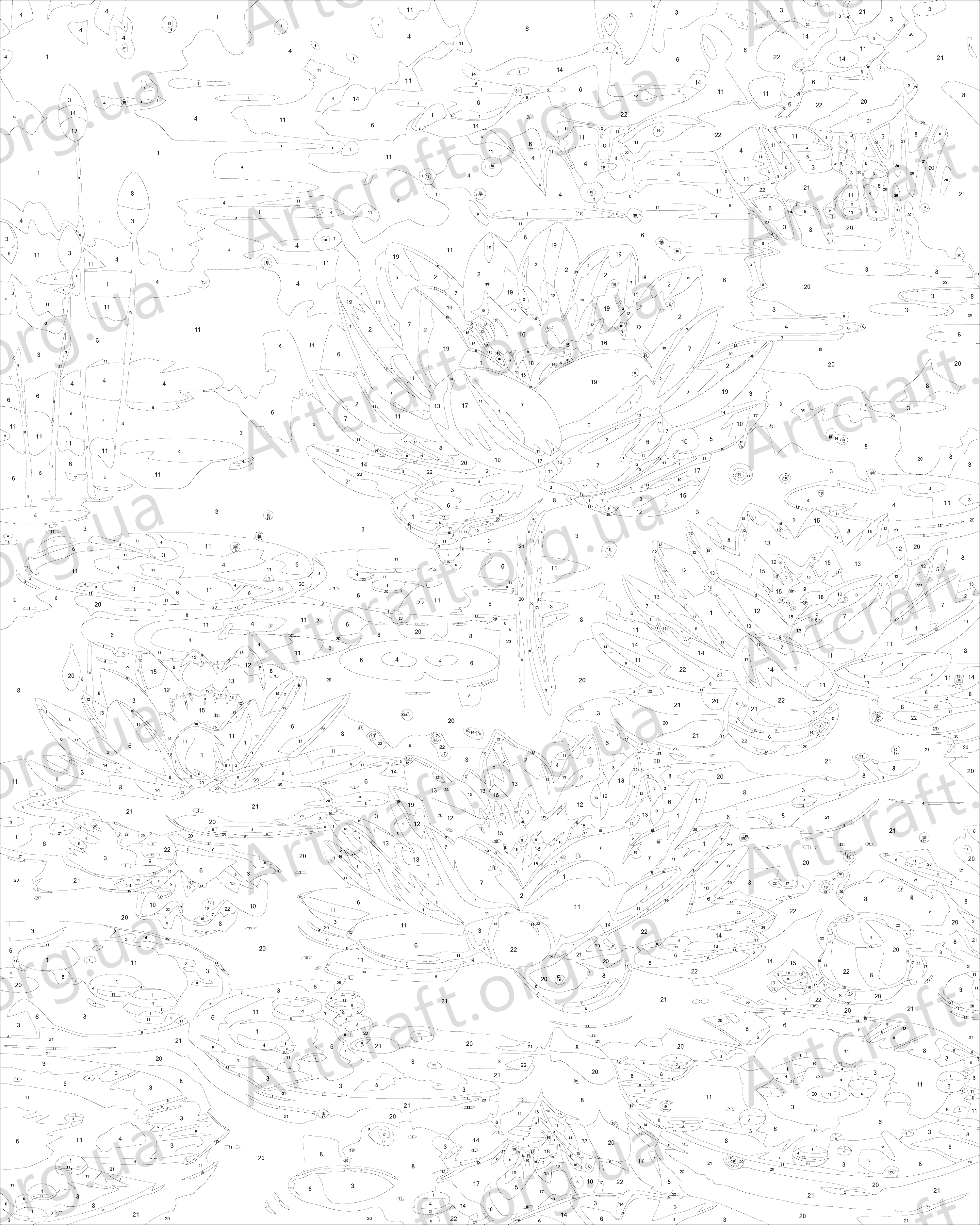 1. A canvas on a wooden stretcher frame with pre-drawn outlines and numbers. The combination of a balanced cotton-based canvas, a specially developed acrylic primer and mechanical stretching ensures the canvas’s elasticity and resistance to sagging.