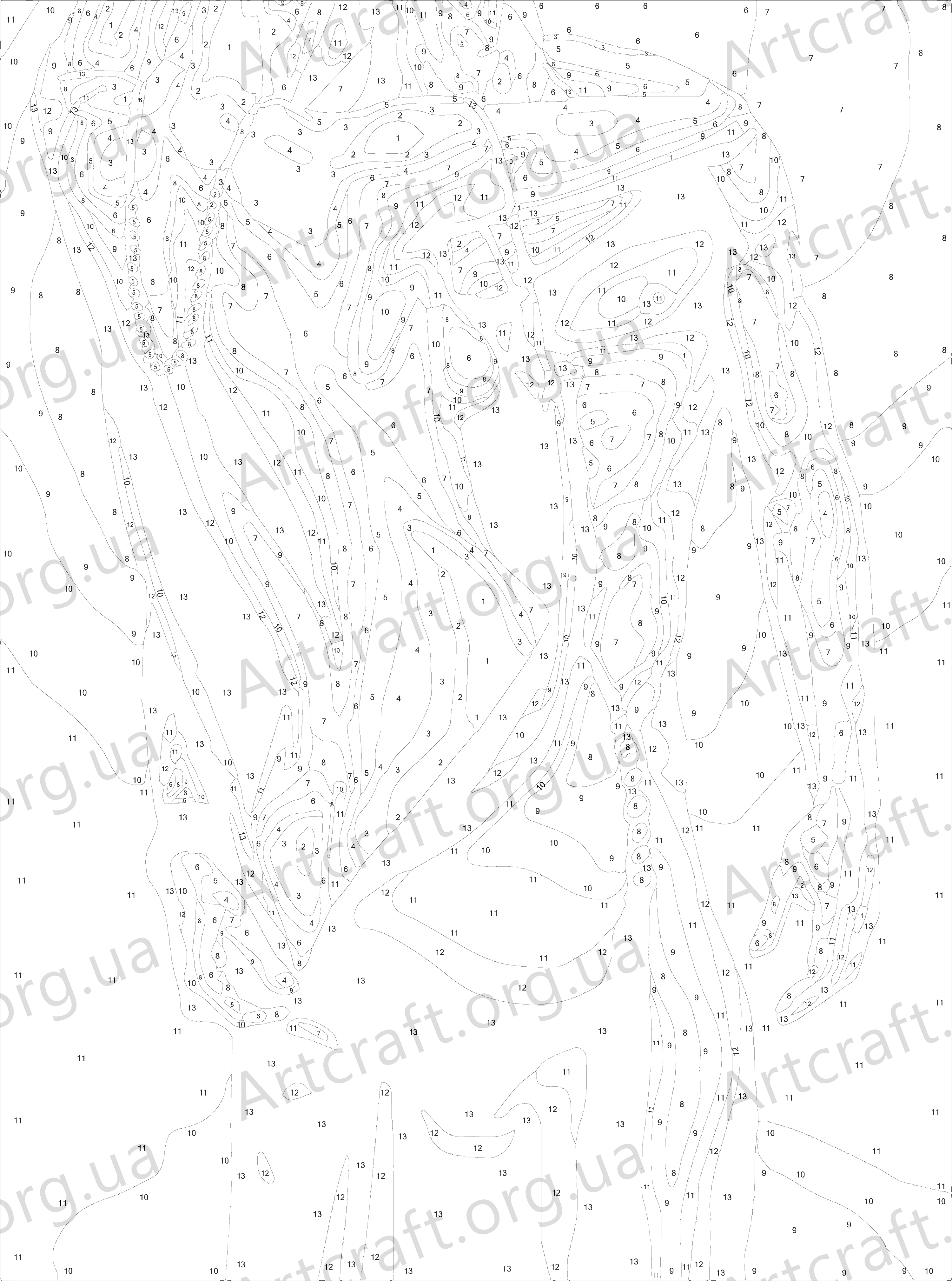 1. Canvas on a wooden stretcher with outlines and numbers. The combination of a balanced cotton-based canvas, specially designed acrylic primer and mechanical tensioning ensures the elasticity of the canvas and resistance to sagging.