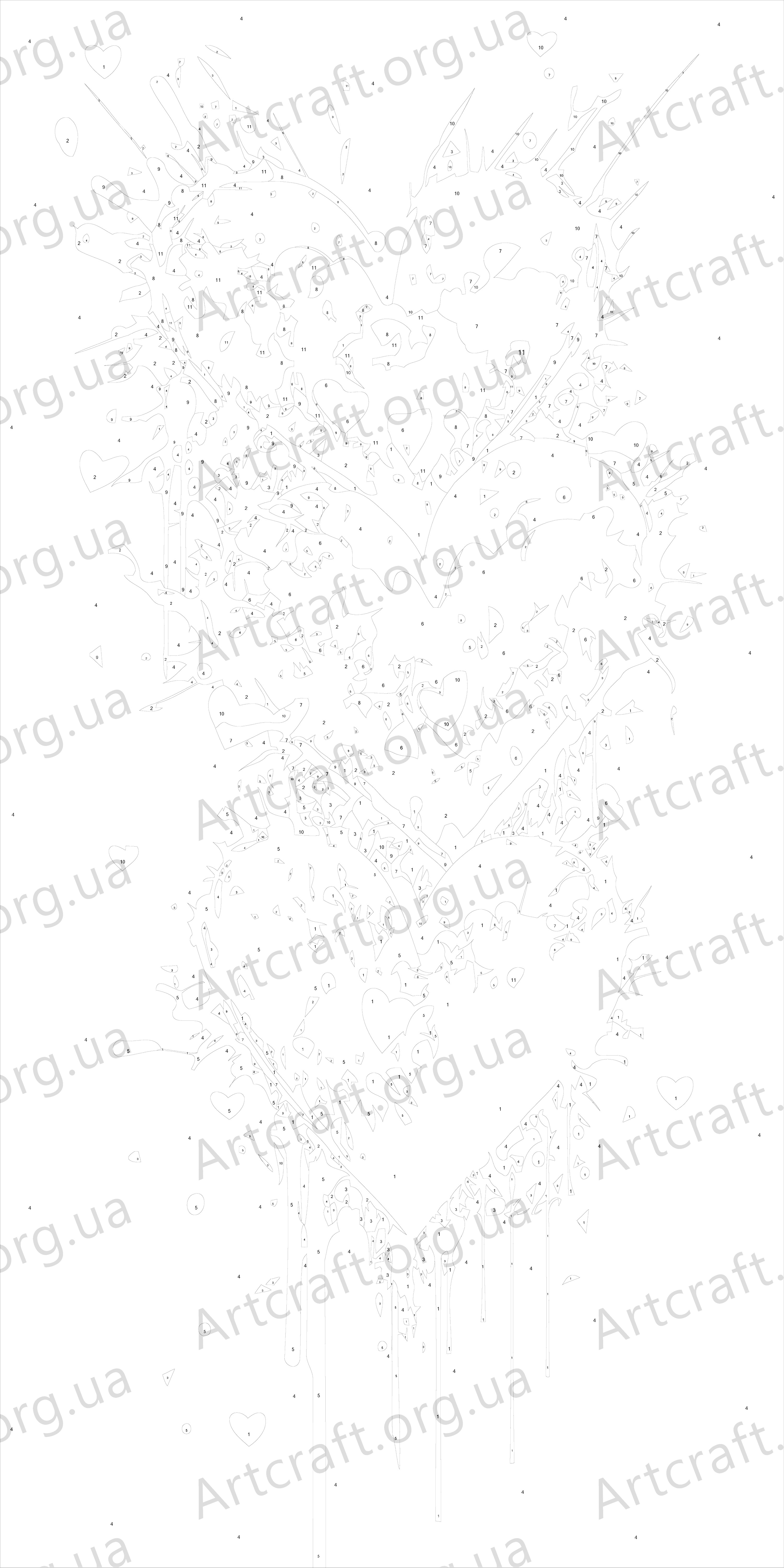 1. Canvas on a wooden stretcher with outlines and numbers. The combination of a balanced cotton-based canvas, specially developed acrylic primer and mechanical stretching guarantees the elasticity of the canvas and resistance to sagging.