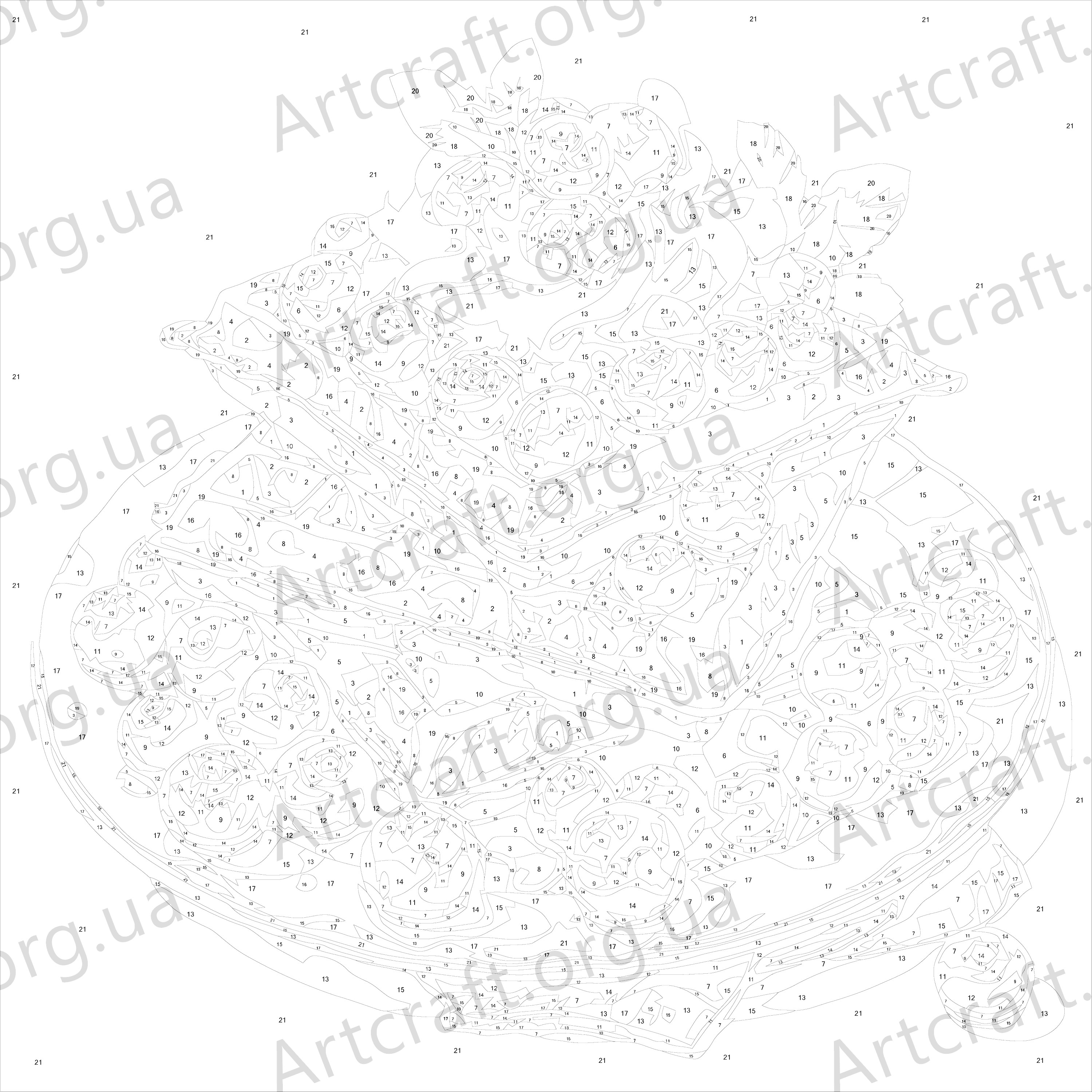 1. Полотно на дерев'яному підрамнику з нанесеними контурами та цифрами. Поєднання збалансованого складу полотна на бавовняній основі, спеціально розробленого акрилового грунту та механічна натяжна – гарантує пружність полотна та стійкість до провисання.