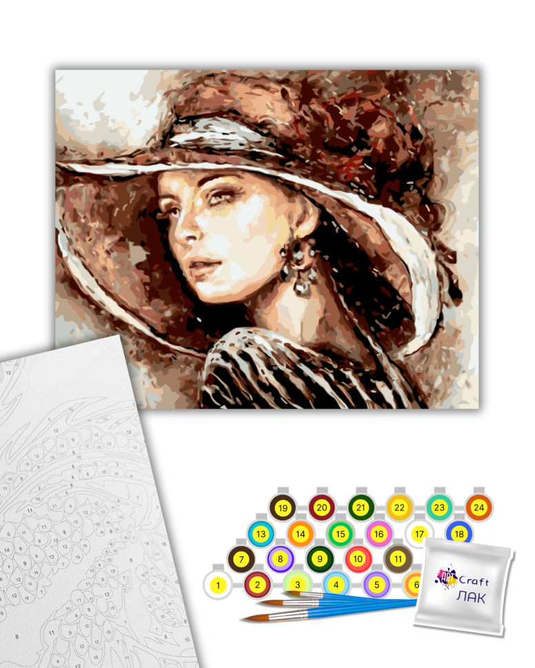 1. Полотно на дерев'яному підрамнику з нанесеними контурами та цифрами. Поєднання збалансованого складу полотна на бавовняній основі, спеціально розробленого акрилового грунту та механічна натяжна – гарантує пружність полотна та стійкість до провисання.