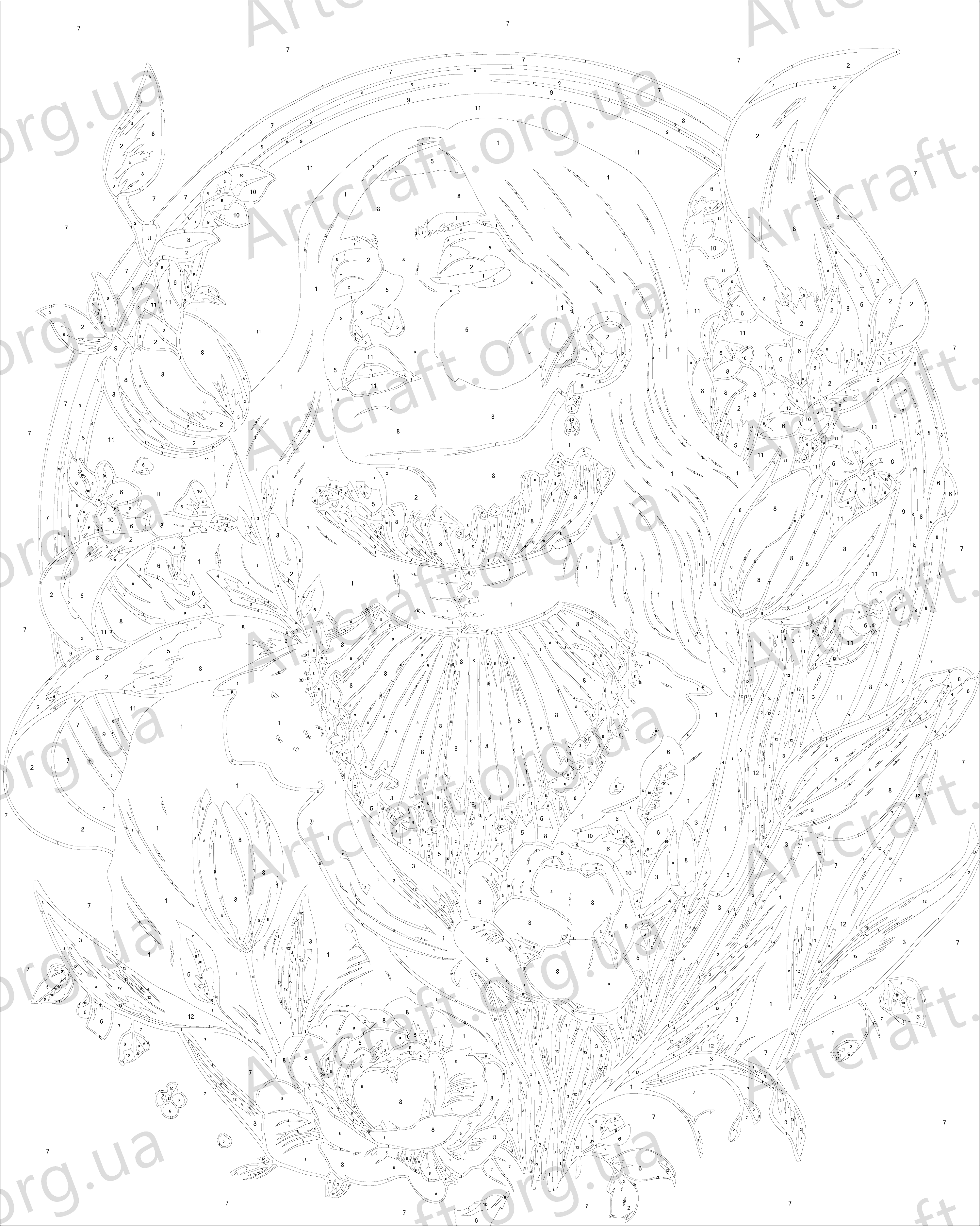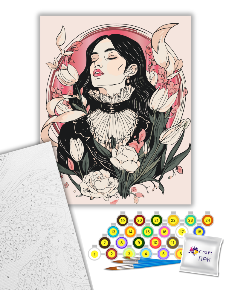 1. Полотно на дерев'яному підрамнику з нанесеними контурами та цифрами. Поєднання збалансованого складу полотна на бавовняній основі, спеціально розробленого акрилового грунту та механічна натяжна – гарантує пружність полотна та стійкість до провисання.