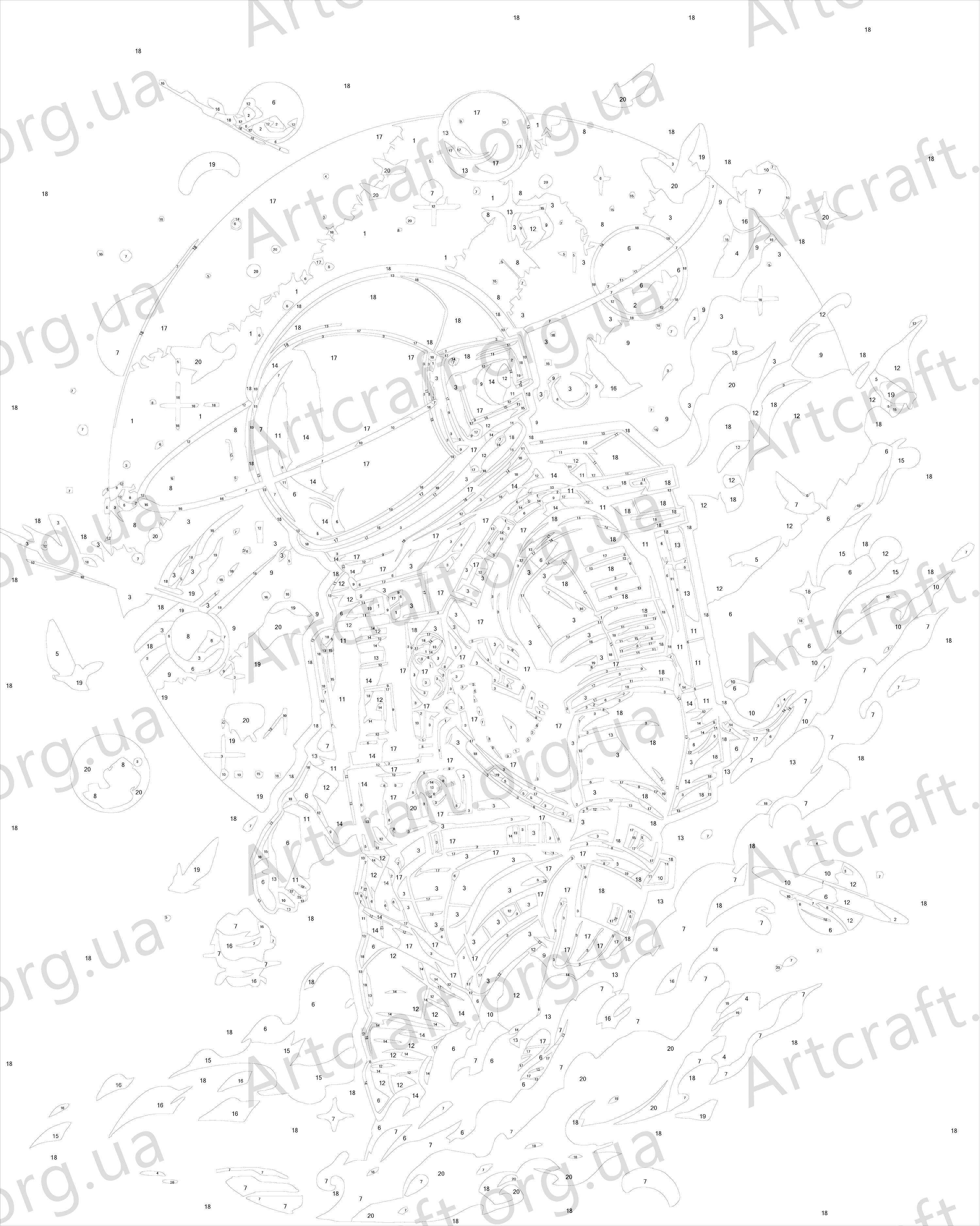 1. Полотно на дерев'яному підрамнику з нанесеними контурами та цифрами. Поєднання збалансованого складу полотна на бавовняній основі, спеціально розробленого акрилового грунту та механічна натяжна – гарантує пружність полотна та стійкість до провисання.