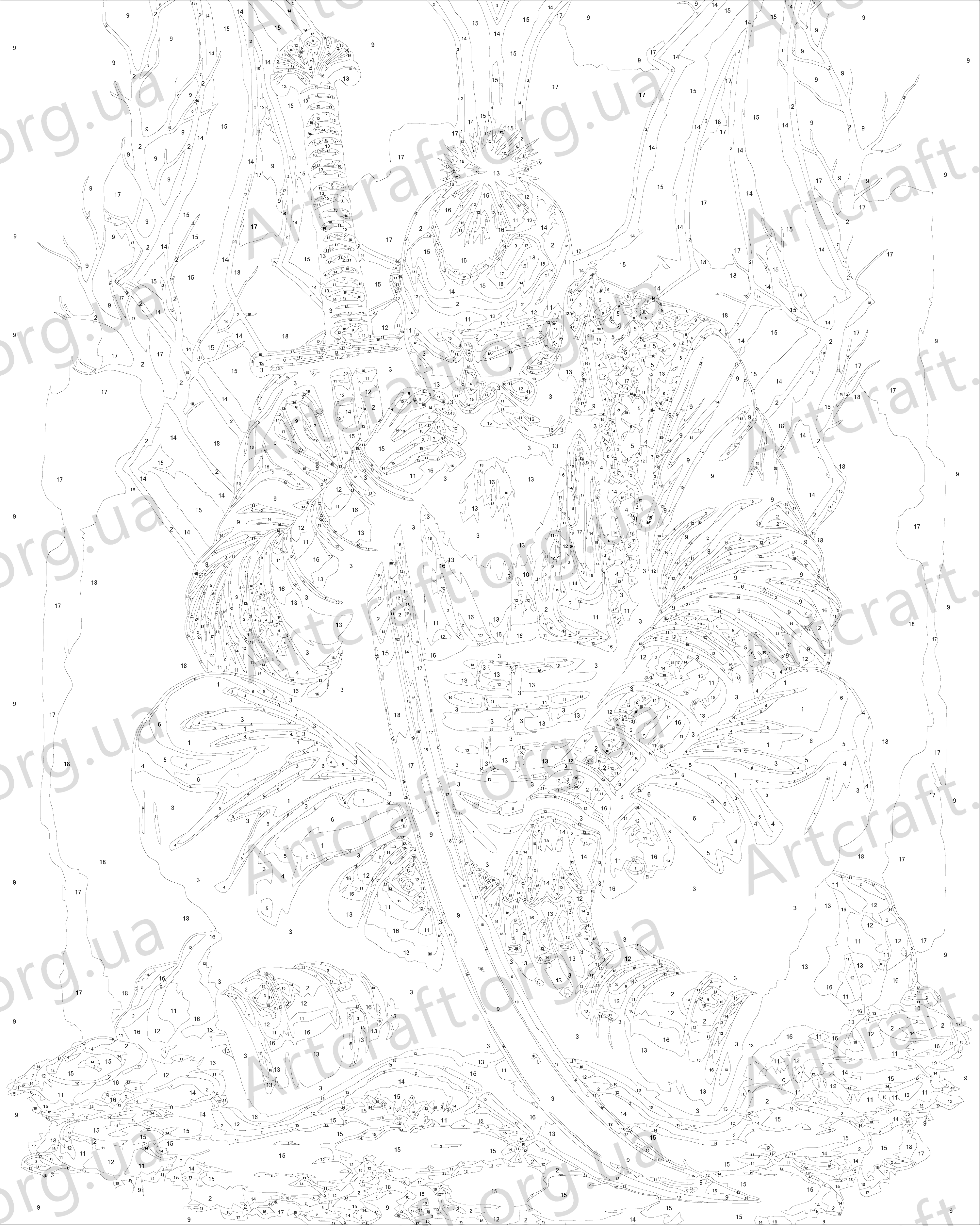 1. Полотно на дерев'яному підрамнику з нанесеними контурами та цифрами. Поєднання збалансованого складу полотна на бавовняній основі, спеціально розробленого акрилового грунту та механічна натяжна – гарантує пружність полотна та стійкість до провисання.