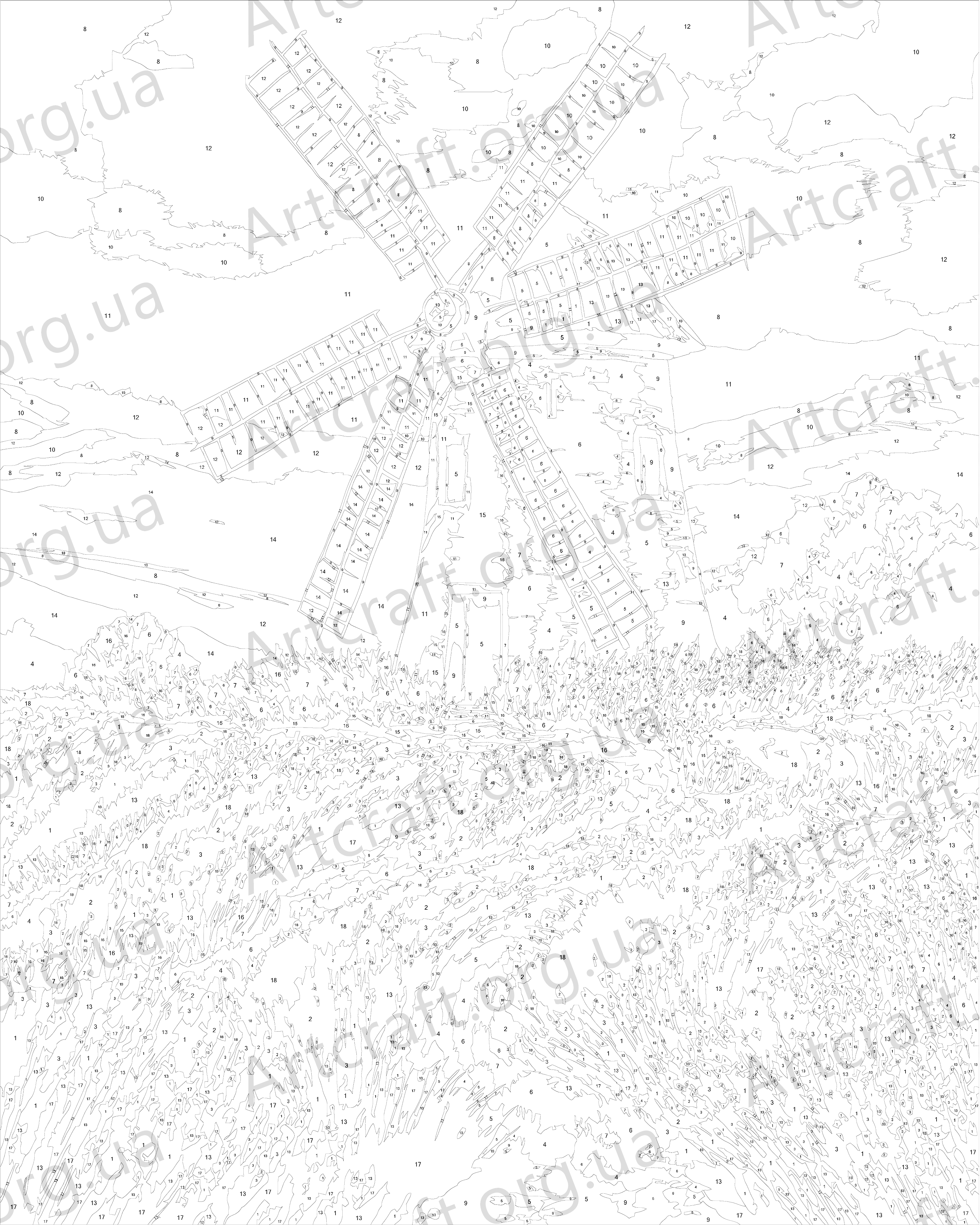 1. Полотно на дерев'яному підрамнику з нанесеними контурами та цифрами. Поєднання збалансованого складу полотна на бавовняній основі, спеціально розробленого акрилового грунту та механічна натяжна – гарантує пружність полотна та стійкість до провисання.
