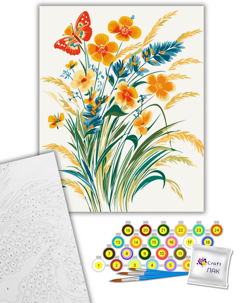 1. Полотно на дерев'яному підрамнику з нанесеними контурами та цифрами. Поєднання збалансованого складу полотна на бавовняній основі, спеціально розробленого акрилового грунту та механічна натяжна – гарантує пружність полотна та стійкість до провисання.
