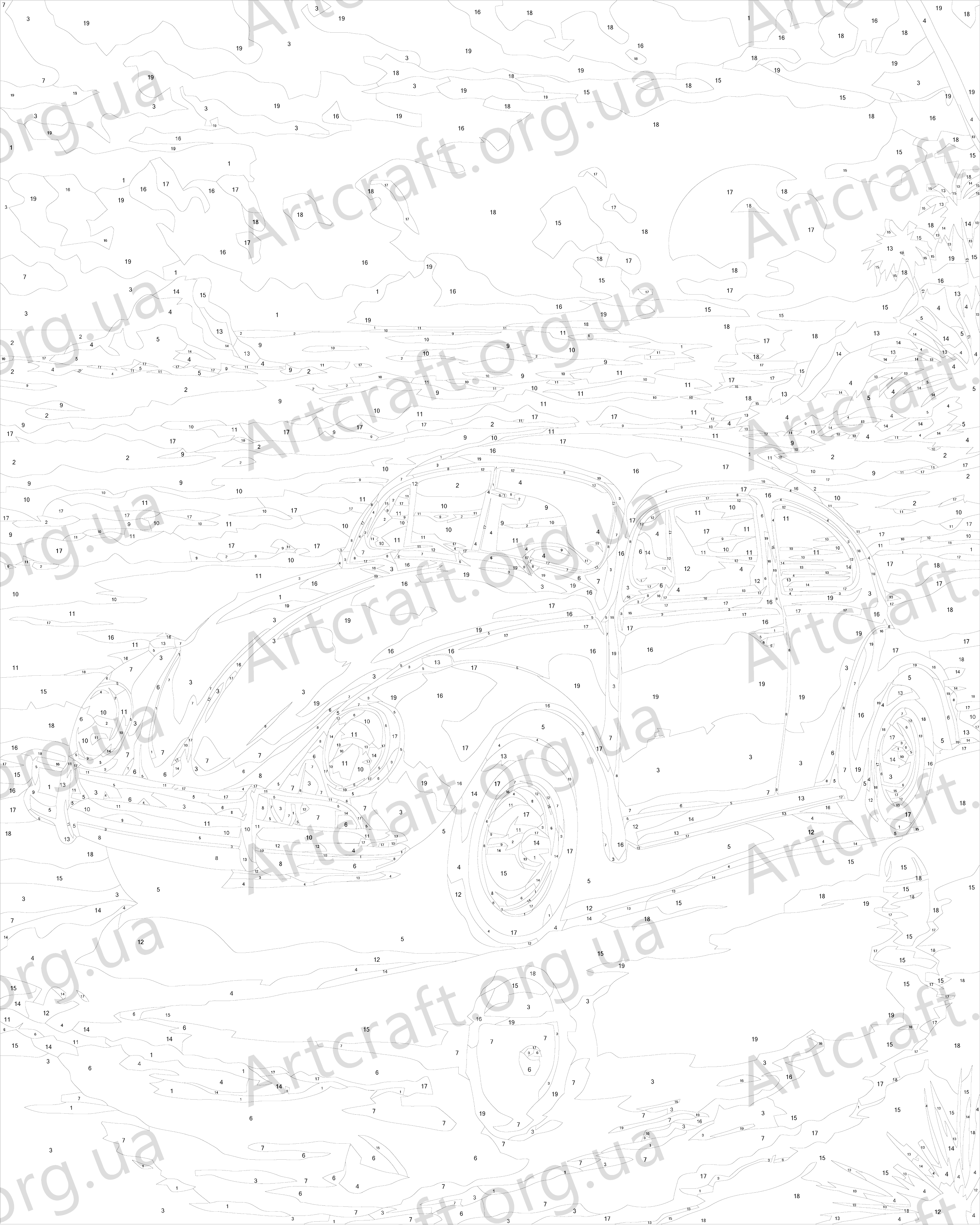 1. Полотно на дерев'яному підрамнику з нанесеними контурами та цифрами. Поєднання збалансованого складу полотна на бавовняній основі, спеціально розробленого акрилового грунту та механічна натяжна – гарантує пружність полотна та стійкість до провисання.
