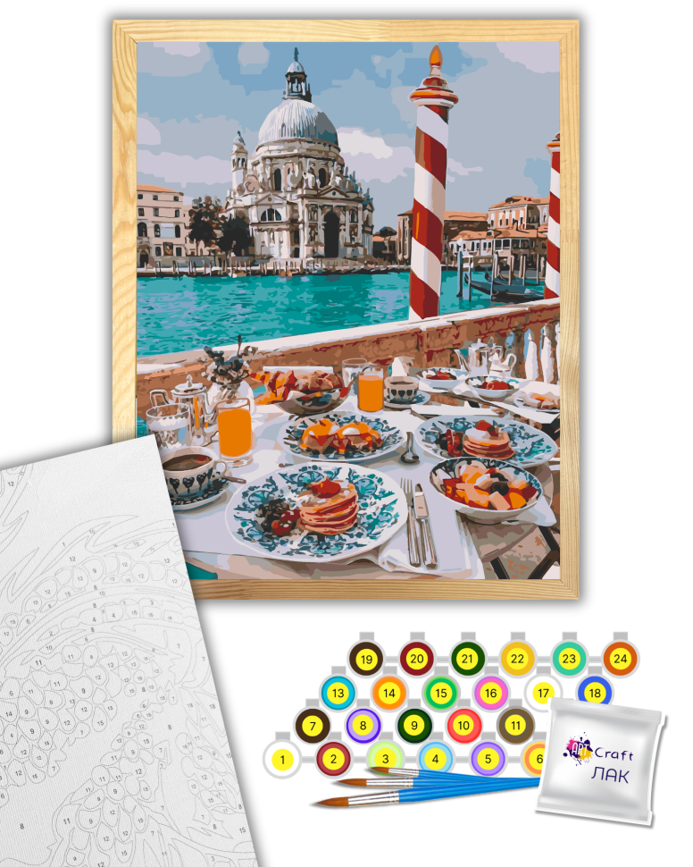 Картина за номерами "Сніданок у Венеції" 11229-ACF 40х50 см з багетною рамкою в комплекті