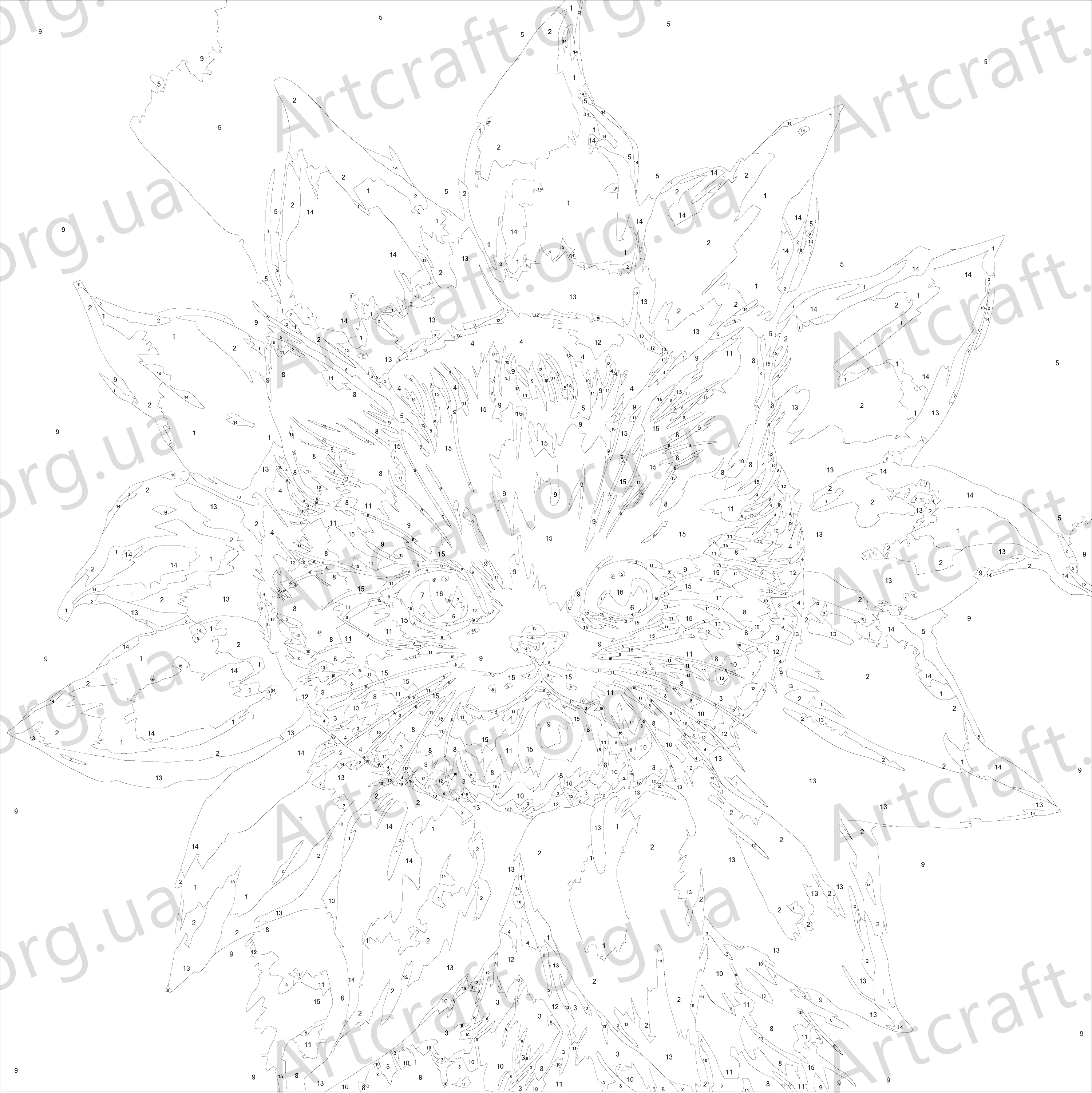 1. Полотно на дерев'яному підрамнику з нанесеними контурами та цифрами. Поєднання збалансованого складу полотна на бавовняній основі, спеціально розробленого акрилового грунту та механічна натяжна – гарантує пружність полотна та стійкість до провисання.