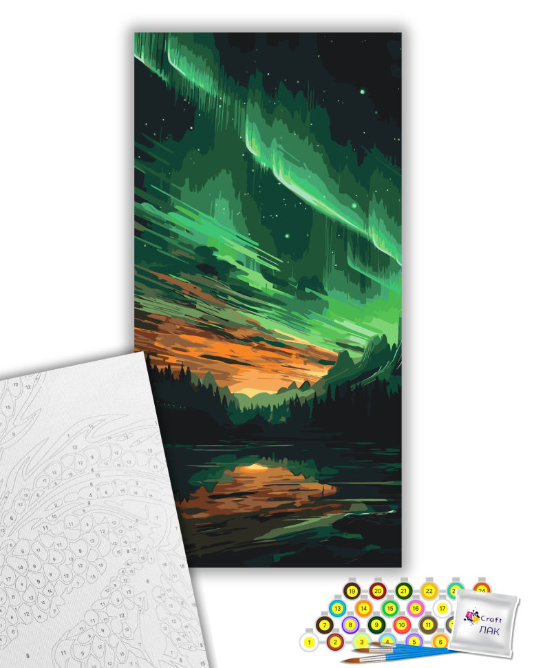 1. Полотно на дерев'яному підрамнику з нанесеними контурами та цифрами. Поєднання збалансованого складу полотна на бавовняній основі, спеціально розробленого акрилового грунту та механічна натяжна – гарантує пружність полотна та стійкість до провисання.