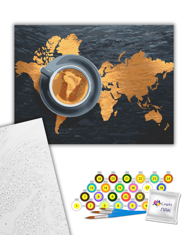 1. Полотно на дерев'яному підрамнику з нанесеними контурами та цифрами. Поєднання збалансованого складу полотна на бавовняній основі, спеціально розробленого акрилового грунту та механічна натяжна – гарантує пружність полотна та стійкість до провисання.