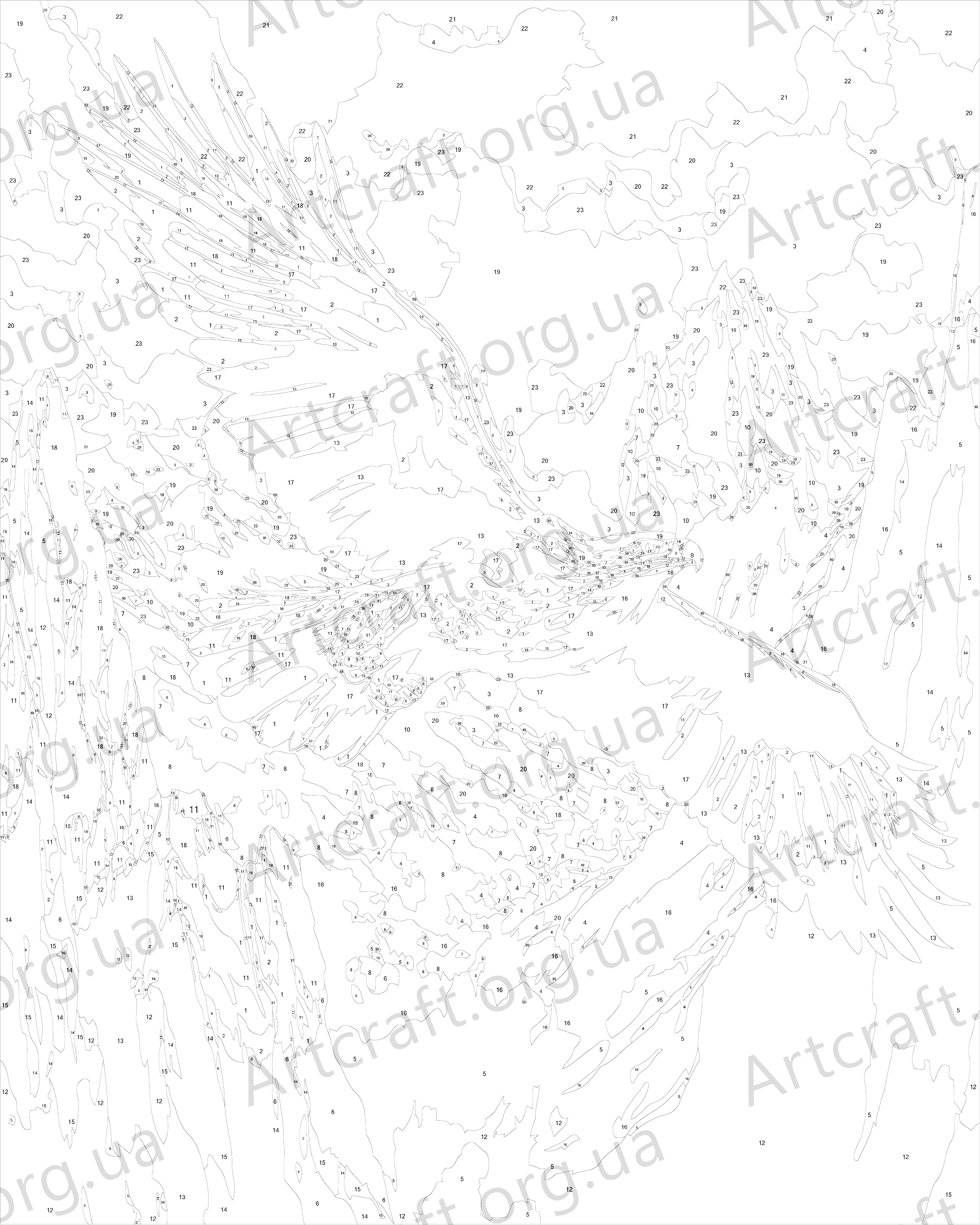 1. Полотно на дерев'яному підрамнику з нанесеними контурами та цифрами. Поєднання збалансованого складу полотна на бавовняній основі, спеціально розробленого акрилового грунту та механічна натяжна – гарантує пружність полотна та стійкість до провисання.