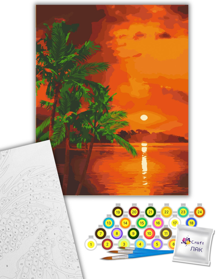 За допомогою картин за номерами, всі без винятку зможуть оволодіти мистецтвом живопису, відчути радість творчості і розкрити свої внутрішні таланти. Ці набори для творчості стануть хорошим подарунком незалежно від віку, статі чи професії. Вони слугують відмінним інструментом для розвитку дрібної моторики і творчого мислення у дітей. І найважливіше, картини за номерами наділені анти-стрес ефектом. До набору входить: 1. Полотно на дерев'яному підрамнику з нанесеними контурами та цифрами. Поєднання збалансованого складу полотна на бавовняній основі, спеціально розробленого акрилового грунту та механічна натяжна – гарантує пружність полотна та стійкість до провисання. 2. Комплект пензликів (3 шт.) різної товщини зроблені з еластичного нейлону. Такими пензликами дуже зручно замальовувати всі контури. 3. Акрилові фарби виготовлені з екологічно чистих матеріалів. Ми створюємо яскраві і барвисті кольори, стійкі до вицвітання. Кожен набір для малювання по номерам упакований в герметичну упаковку. Розмір картини: 40х50 см.