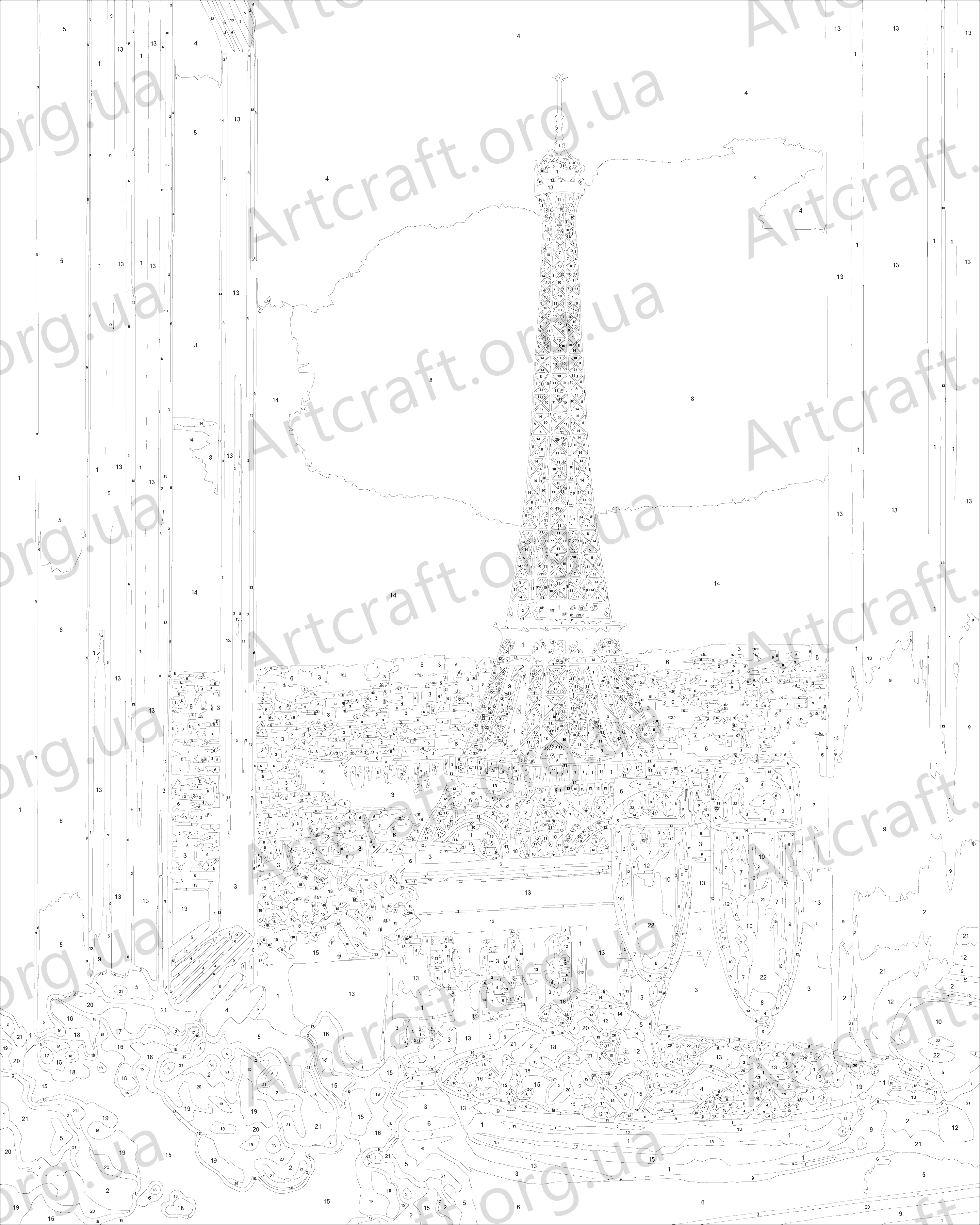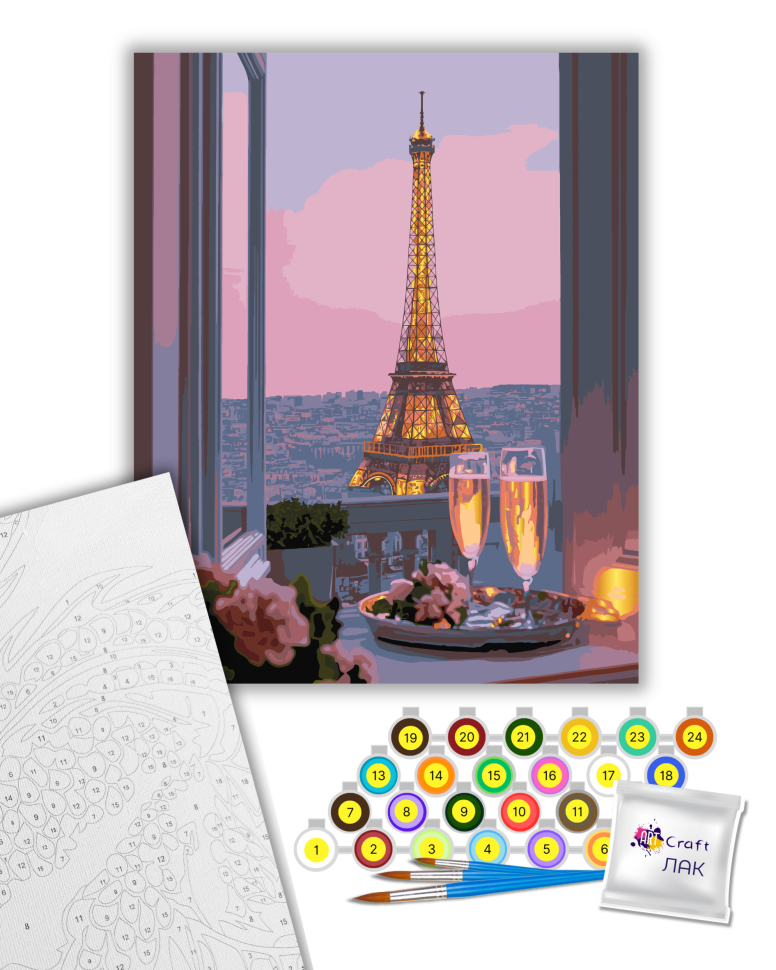 1. Полотно на дерев'яному підрамнику з нанесеними контурами та цифрами. Поєднання збалансованого складу полотна на бавовняній основі, спеціально розробленого акрилового грунту та механічна натяжна – гарантує пружність полотна та стійкість до провисання.