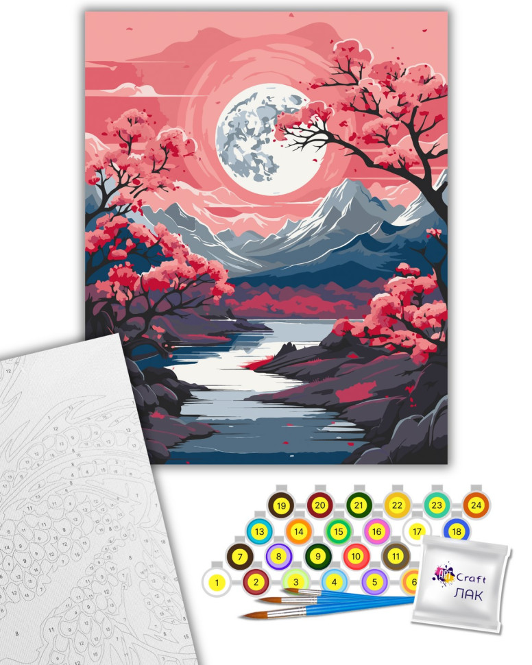 1. Полотно на дерев'яному підрамнику з нанесеними контурами та цифрами. Поєднання збалансованого складу полотна на бавовняній основі, спеціально розробленого акрилового грунту та механічна натяжна – гарантує пружність полотна та стійкість до провисання.
