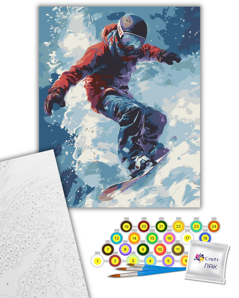 1. Полотно на дерев'яному підрамнику з нанесеними контурами та цифрами. Поєднання збалансованого складу полотна на бавовняній основі, спеціально розробленого акрилового грунту та механічна натяжна – гарантує пружність полотна та стійкість до провисання.