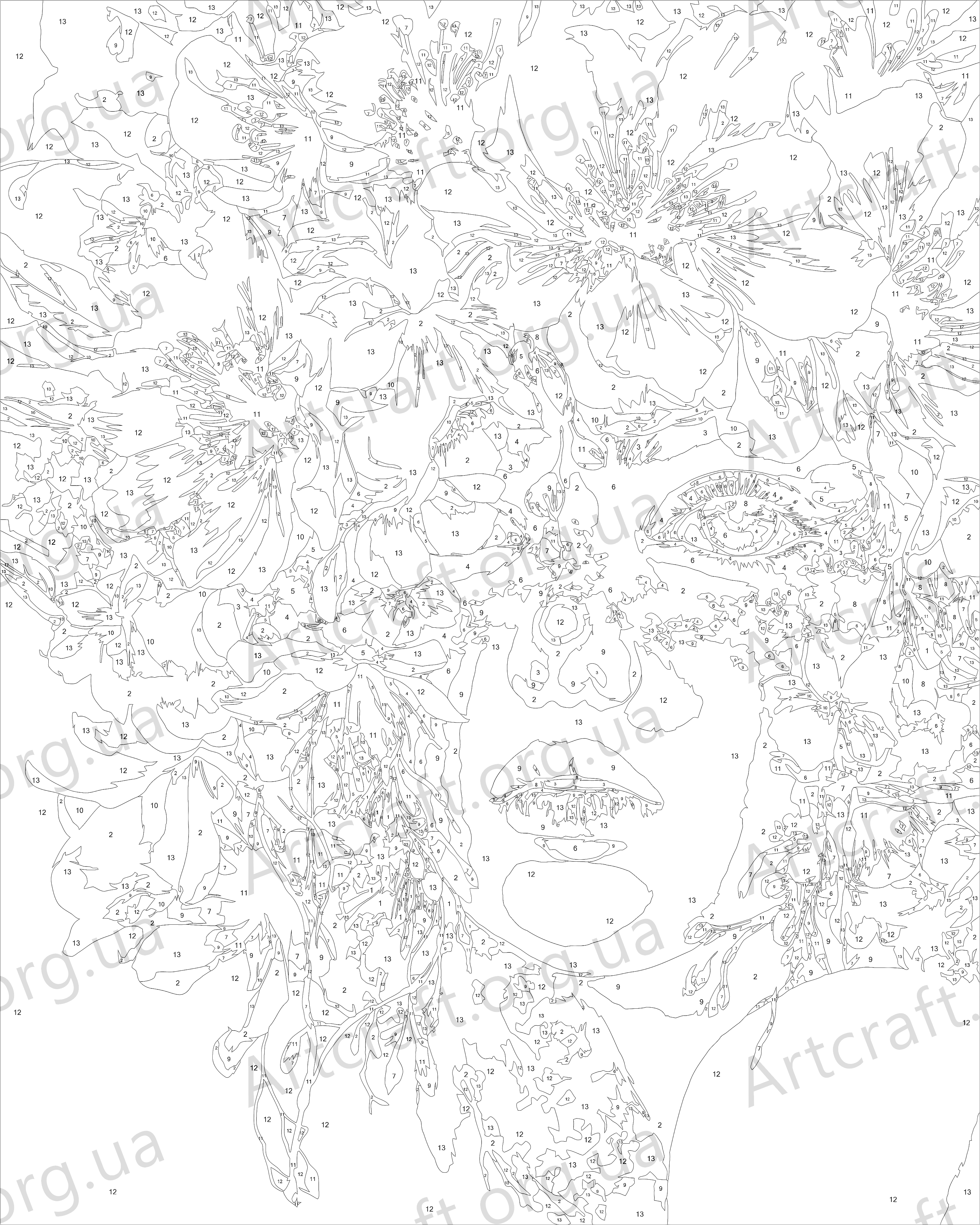 1. Полотно на дерев'яному підрамнику з нанесеними контурами та цифрами. Поєднання збалансованого складу полотна на бавовняній основі, спеціально розробленого акрилового грунту та механічна натяжна – гарантує пружність полотна та стійкість до провисання.