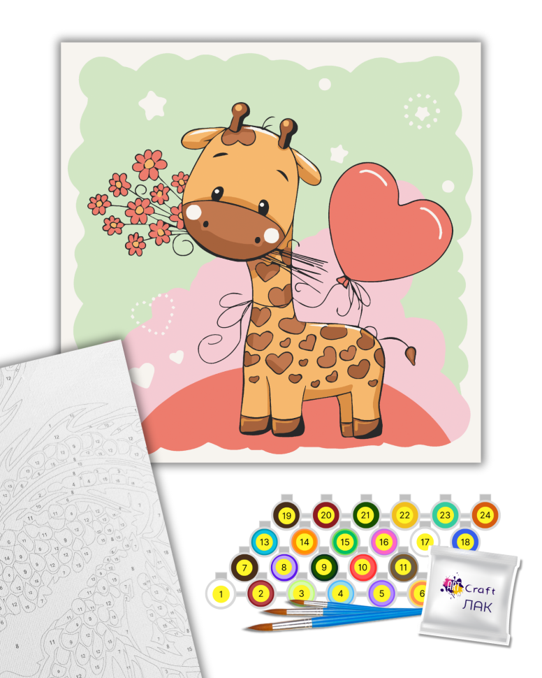 Роспись на холсте "Жирафик с цветами" 15531-AC 30х30 см ArtCraft